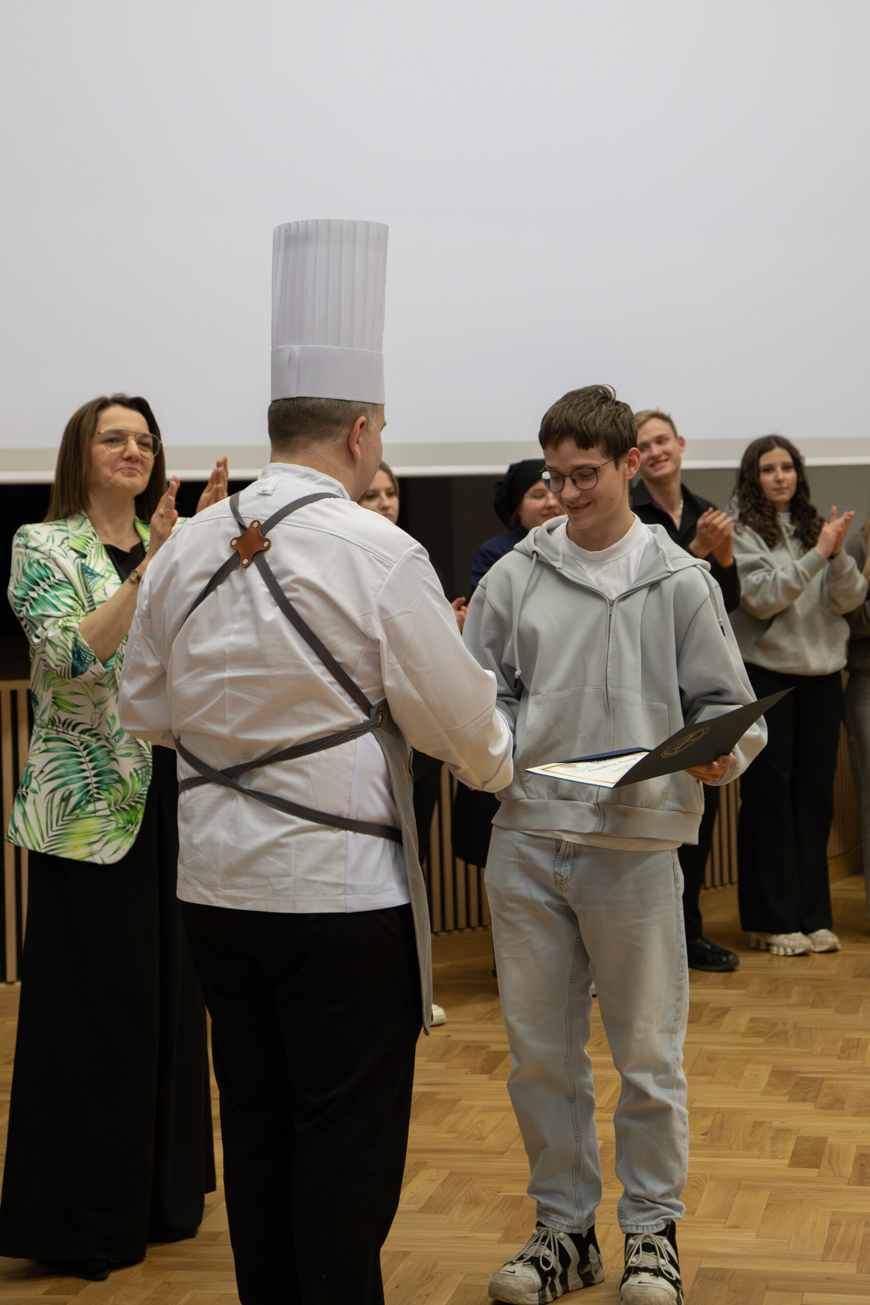 Podczas trwania konkursu odbył się również wykład dla opiekunów i nauczycieli pt. „Neurogastronomia – jak dźwięk zmienia smak?”, który poprowadziła dr Daria Pająk. Spotkanie stanowiło ciekawą okazję do poszerzenia wiedzy na temat wpływu bodźców zmysłowych na odbiór potraw oraz nowoczesnych trendów w gastronomii. Uczestnicy mieli możliwość poznania, w jaki sposób dźwięk, otoczenie i percepcja wpływają na odczuwanie smaku, co z pewnością może znaleźć zastosowanie w praktyce kulinarnej oraz edukacji zawodowej.